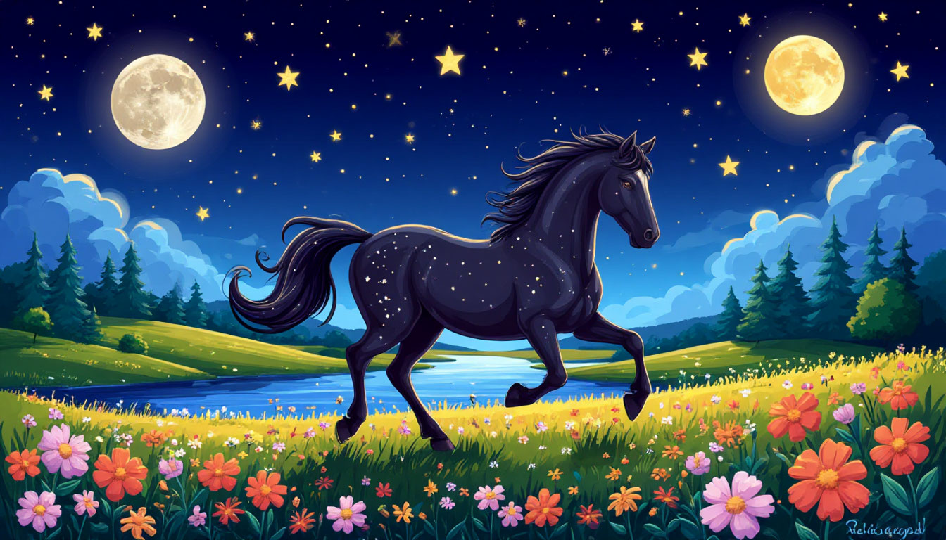Звёздный конь бежит по лугу,