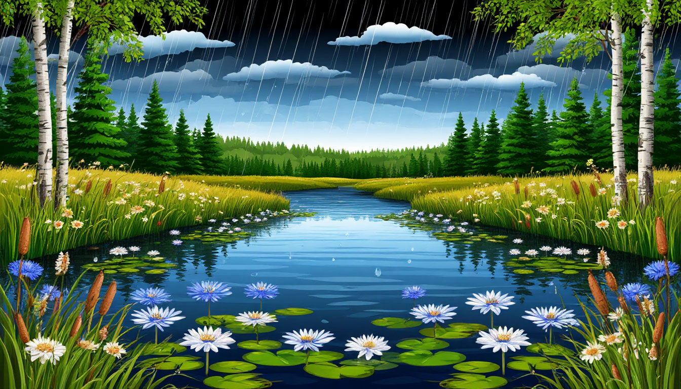 Дождик бежит по лугам.