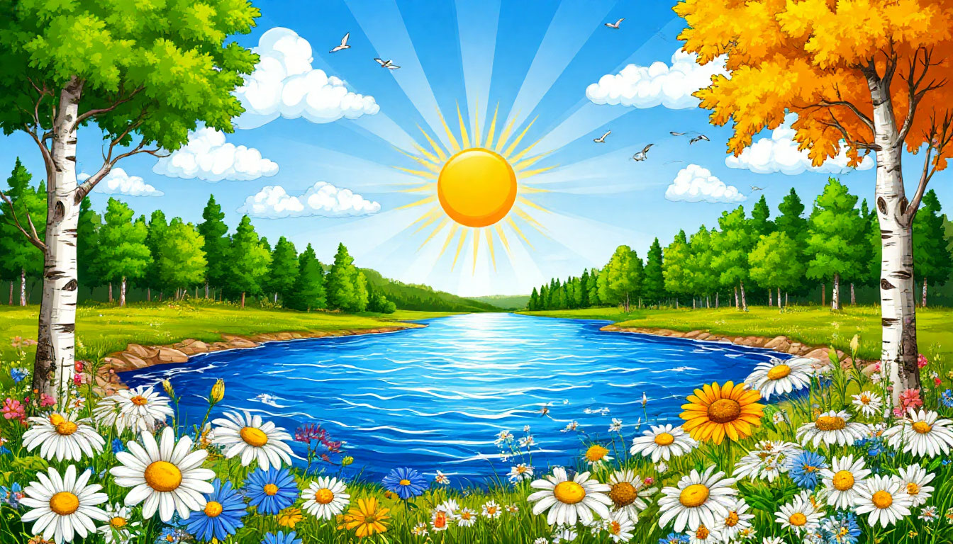 Стоят у воды берёзы,