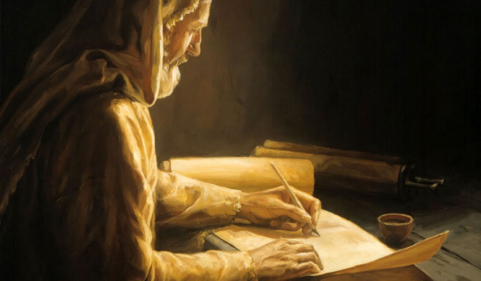 он, в тетради, пишет горькое письмо.